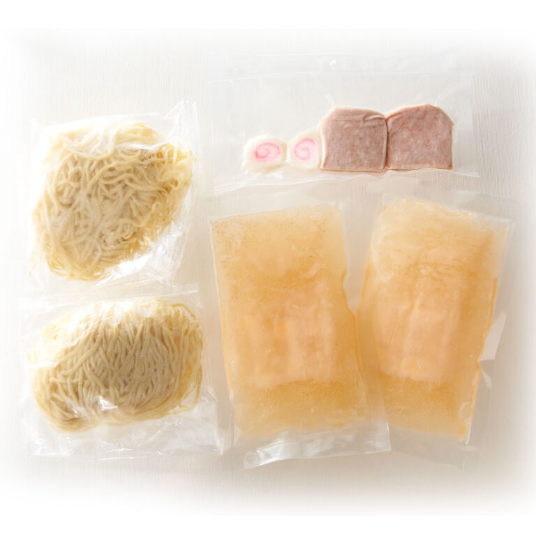 合わせた弊社オリジナルの透き通ったスープと麺とセットに